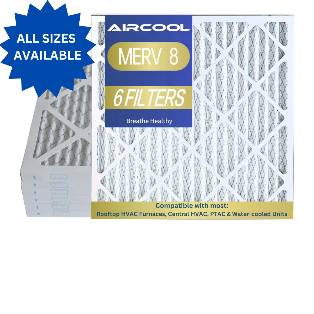 Elevate your indoor air quality with the Aircool MERV 8 HVAC Air Filter. Designed for furnaces, air conditioners, heat pumps, and other HVAC systems, these filters are comparable to trusted brands like 3M Filtrete, Filterbuy, and Honeywell MERV 8. Compatible with systems from Carrier, Goodman, York, Rheem, Trane, Luxaire, Lennox, McQuay, PTAC units, as well as rooftop, water-cooled, and central HVAC systems.